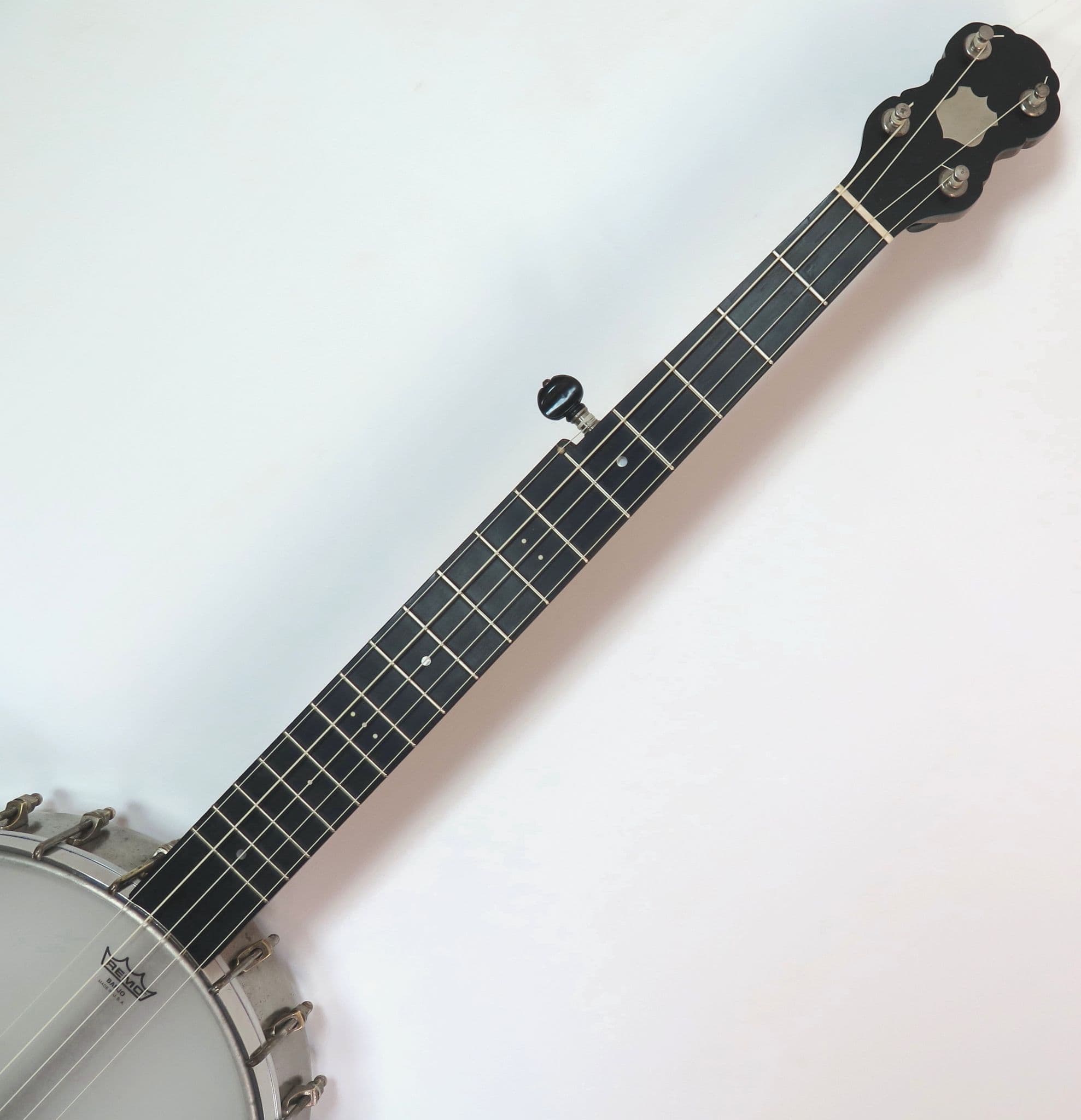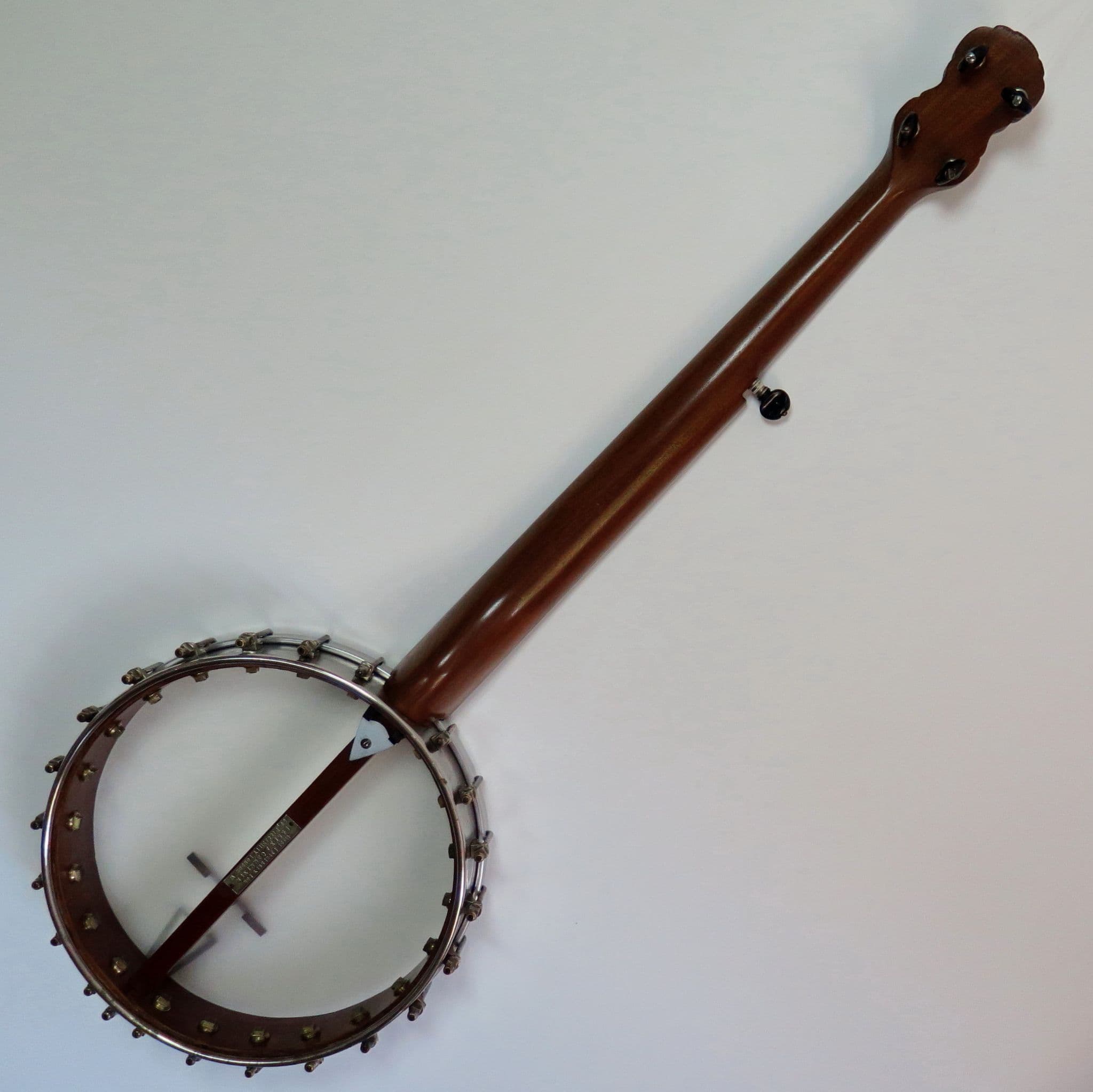 Weaver banjo made for Essex Cammeyer between 1893 and 1900 when Essex dissolved his partnership with Cammeyer, it has seventeen frets, so it predates the classic 22 fret that became the norm for up the neck banjo players